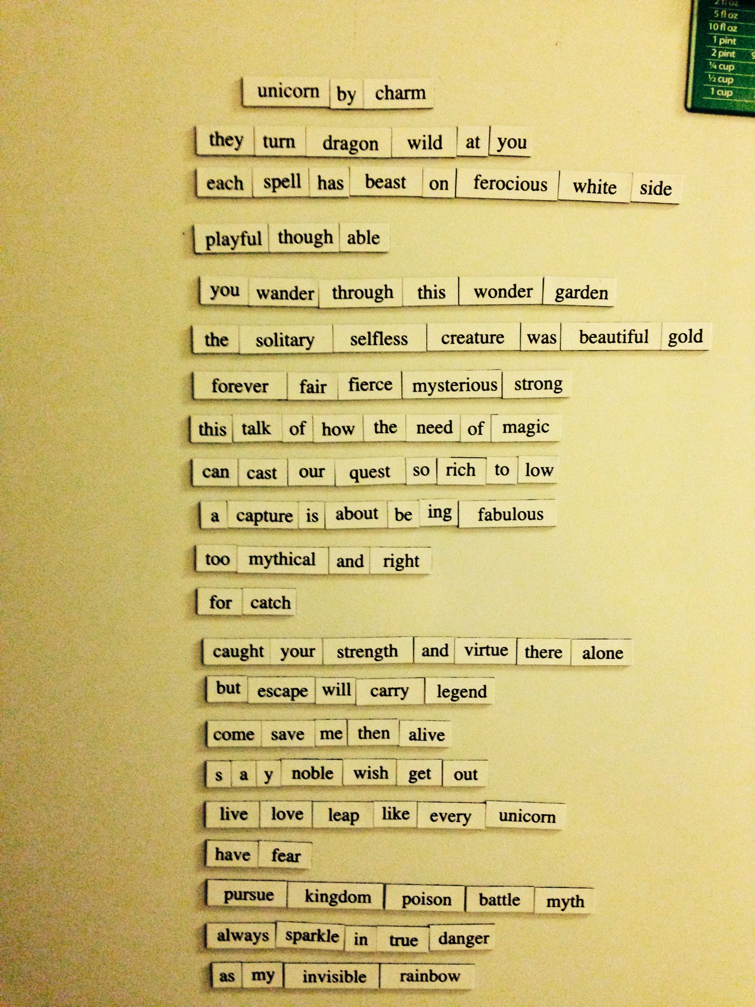 Hvad får man, når man parrer de eneste ord, man kan finde i pakken med sit spritnye Unicorn Lover Magnetic Poetry Kit? Underlige oder om jomfruer i nød, farlige drager og ridderlig kærlighed i et meget old school middelalderligt og fortryllende og magisk univers.